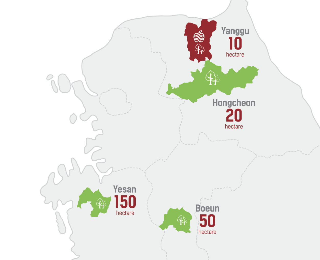 강원도 양구 및 사과 생산에 적합한 지역을 찾아 더 체계적인 관리와 엔비본사의 기술력으로 최고의 엔비사과를 만들어 갑니다.